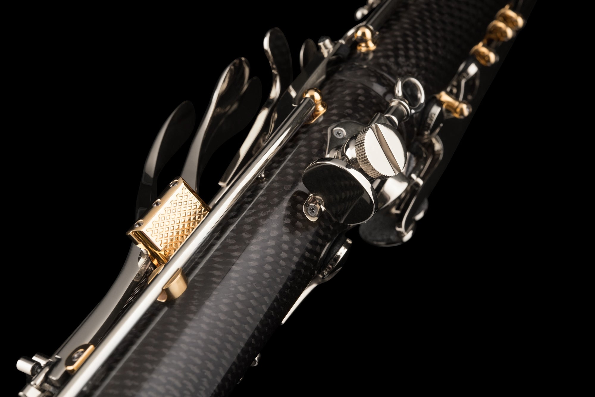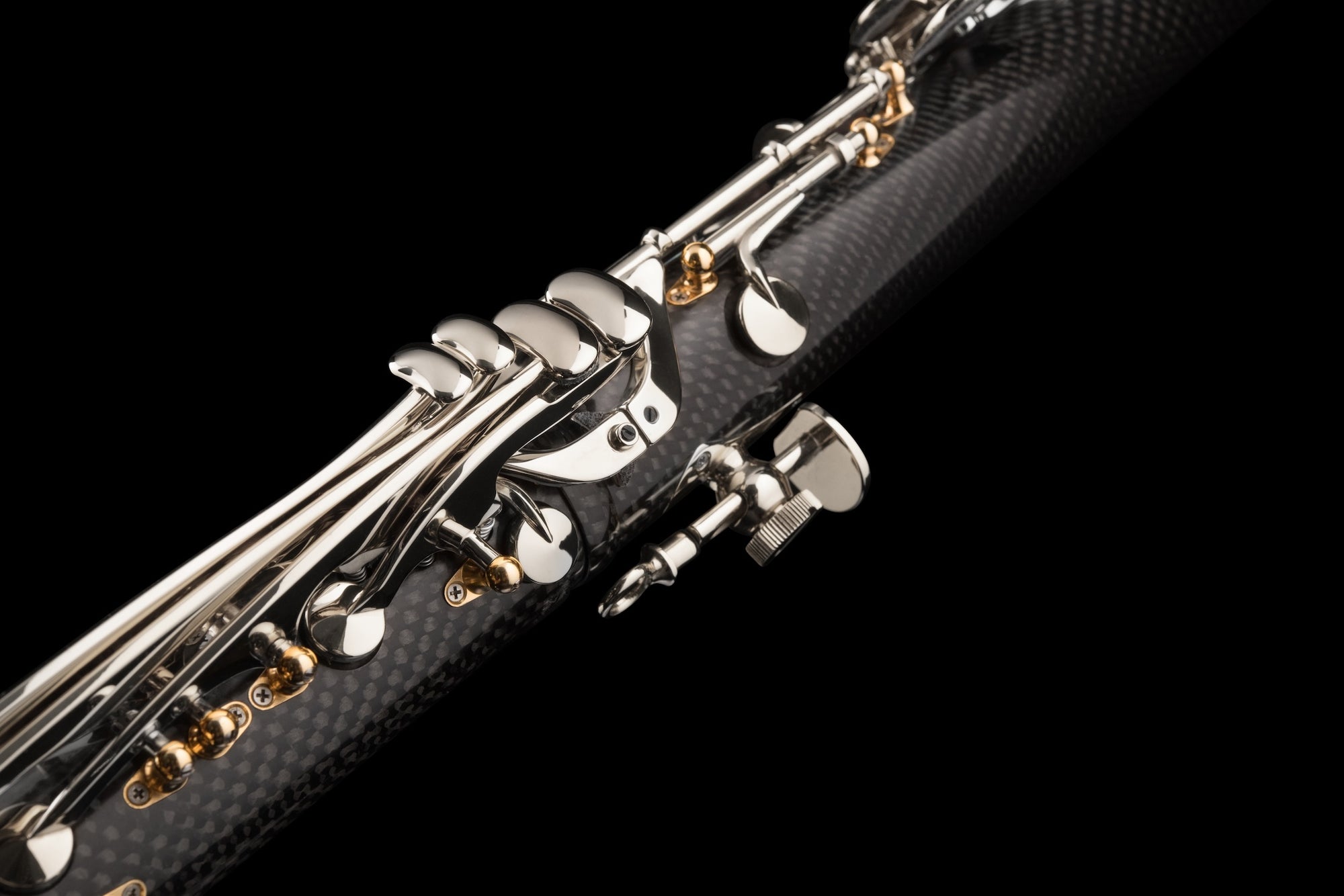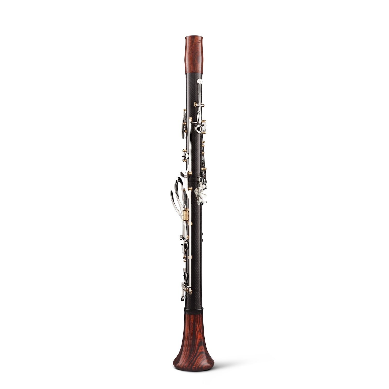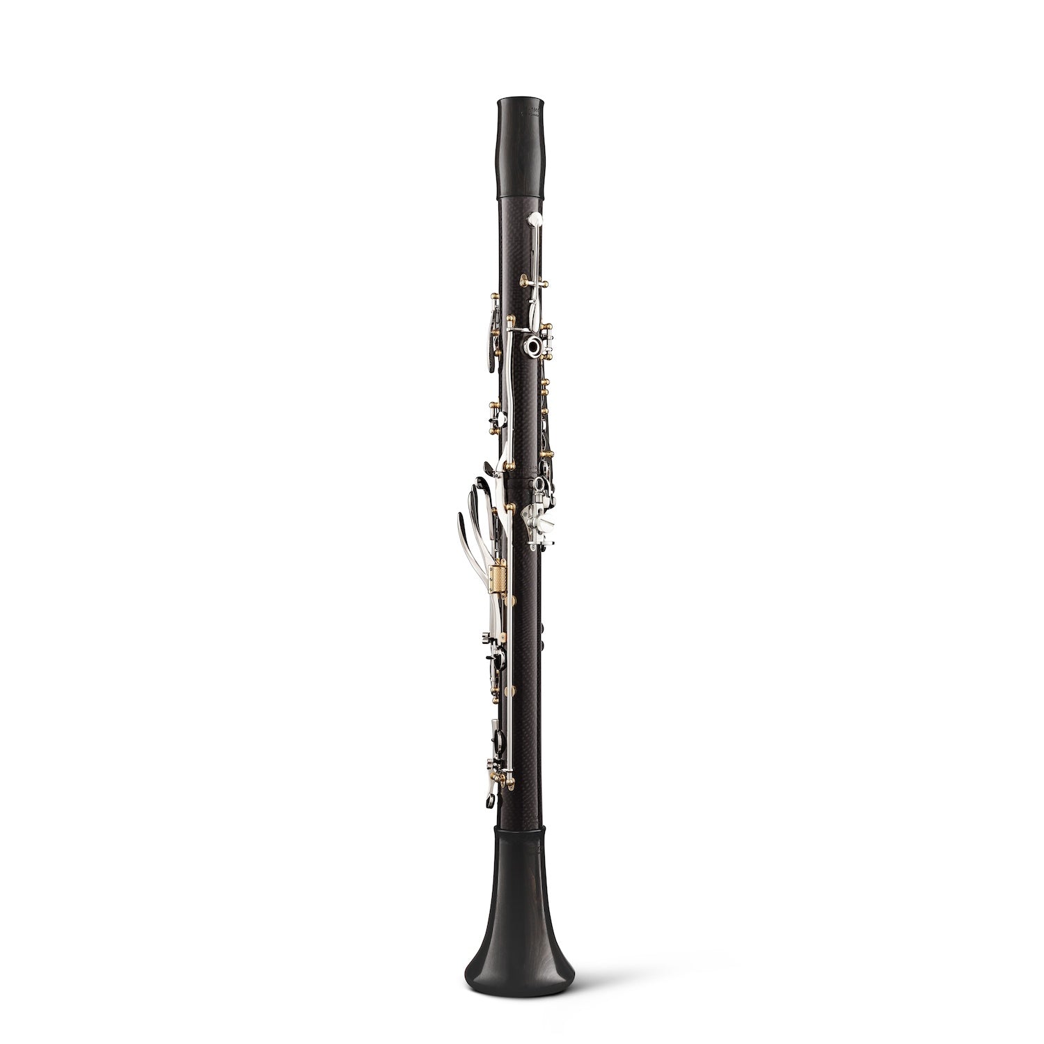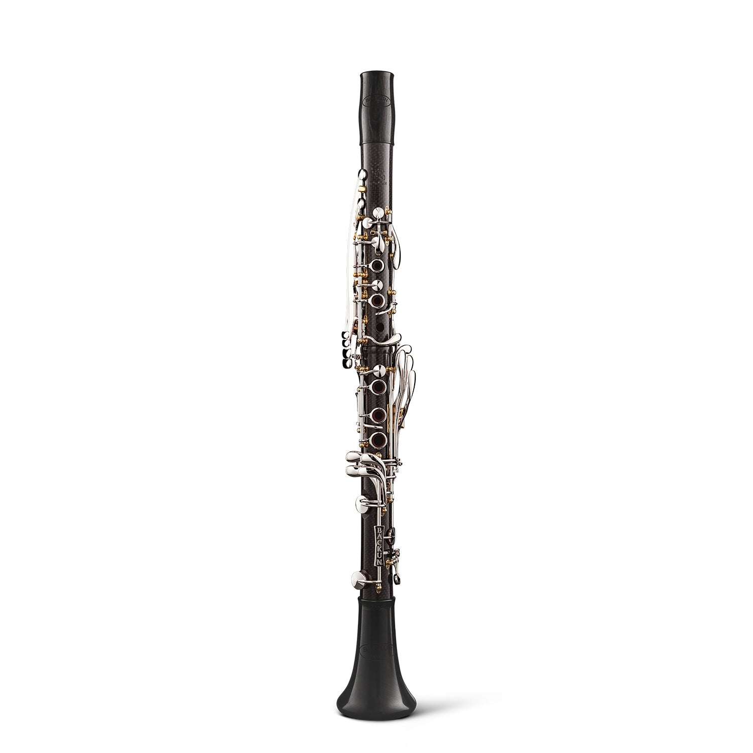 The world’s most technologically advanced clarinet, the CG Carbon features a body crafted from carbon fibre with an exotic wood core. Using a patented process, carbon fibre is fused to the precision machined core, resulting in a clarinet with the robust projection and unmatched intonation that Backun is known for. Years of material analysis and real-world testing have proven the fusion process can endure wide-ranging temperatures and humidity conditions without expansion or contraction of the clarinet body. Tonally, the playing characteristics stay true to that of a wooden clarinet with the new Backun Scale. This signature model, designed for Maestro Corrado Giuffredi, represents a giant leap into the future… and beyond. US Patent No. 10,636,395.