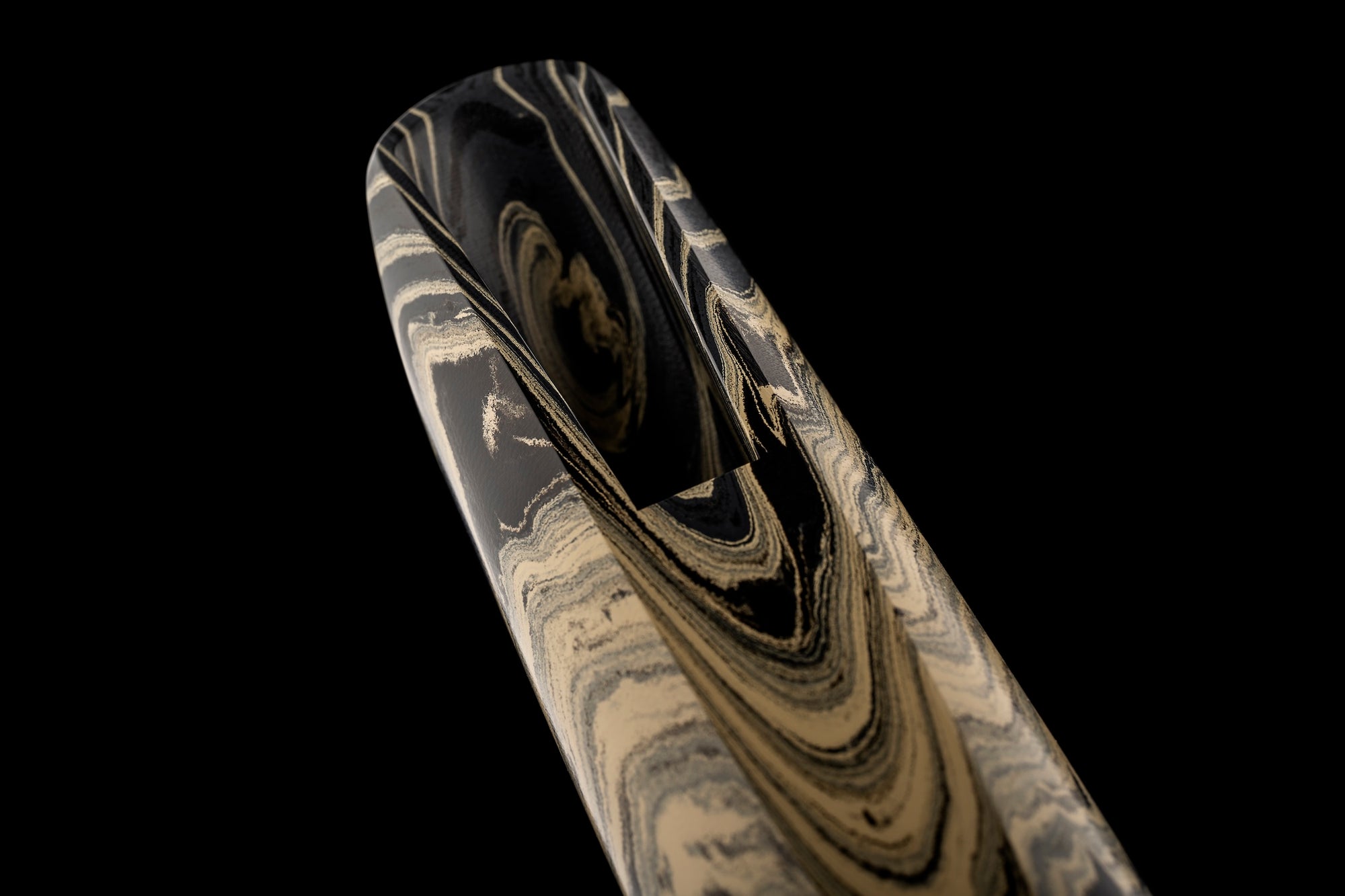 - Extra/Open tip at 1.30mm with an Open+/Long facing, paired with the A-Frame Bore. Crafted from Spanish marble hard-rod rubber
