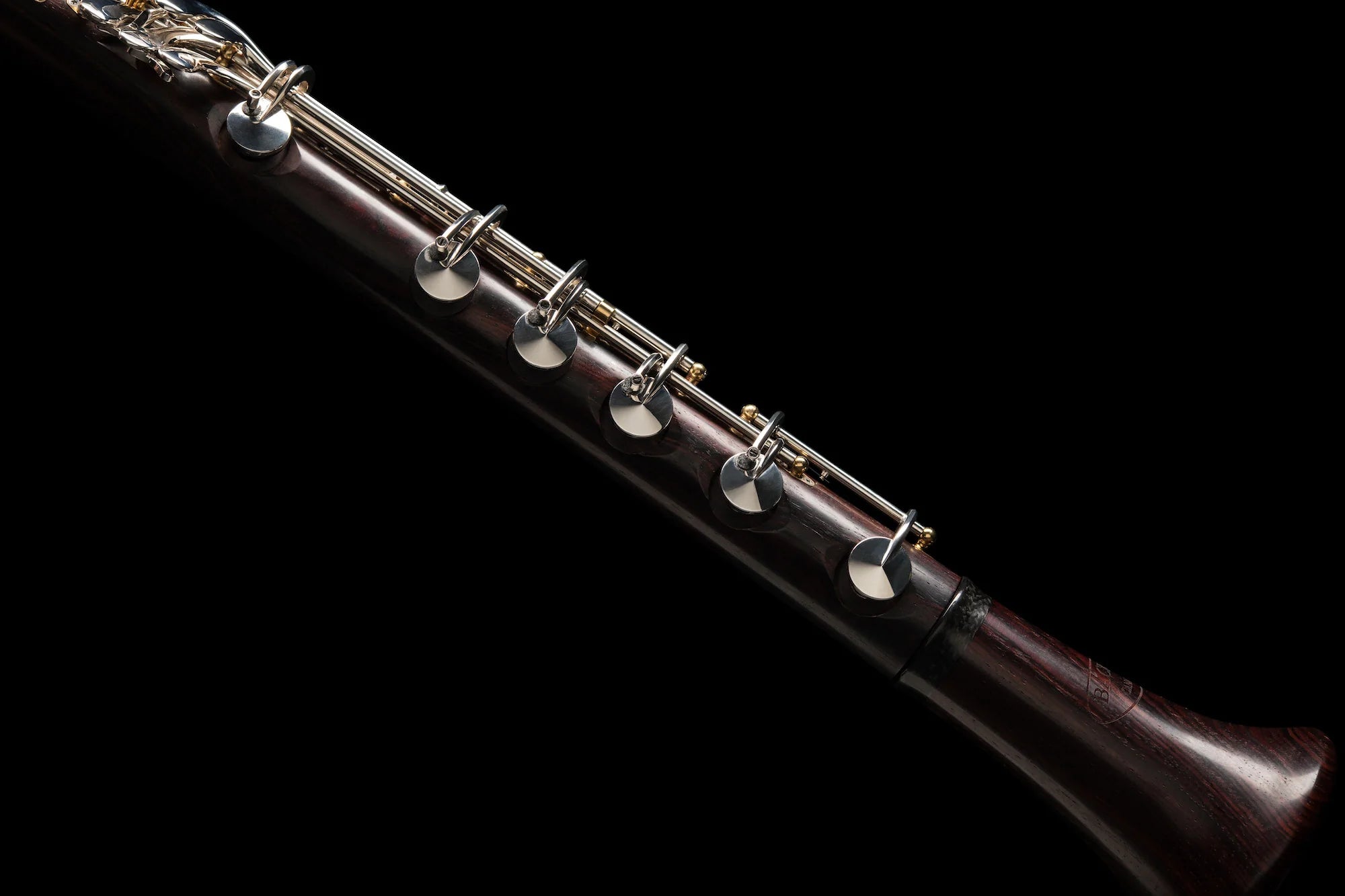 The Lumière Basset A Clarinet is a marvel of modern engineering, precision manufacturing and stunning craftsmanship. Extending the clarinet range down to low C, it is modular in build, allowing the artist to change lower joints, converting their Backun A Clarinet into a Backun Basset A Clarinet and vice versa, depending on performance needs. The Lumière Basset A Lower Joint can be purchased separately, for those who already own a Backun Custom A Clarinet.
